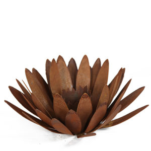 Chrysant met houder voor brandstofgel, op staander, roest design