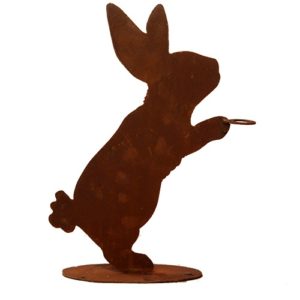 Kussend konijn met recht opstaande oren, op plaat, roest design