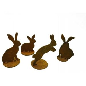 • Decoratieve kleine konijntjes op plaat, set à vier stuks, roest design