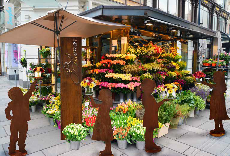 Decoratief bloemenkind groot “Mary” met ring voor bloemenvaas, roest design