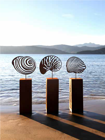 Schelp Nautilus op plaat, roest design